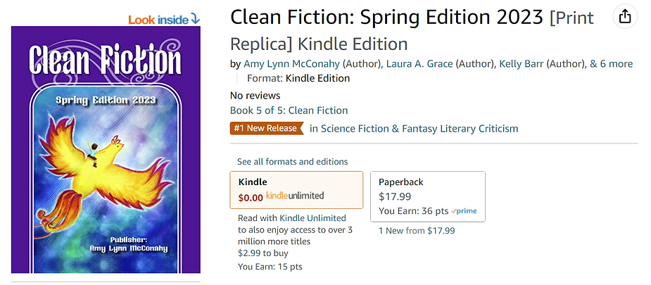 Hello Everyone! I am so happy to share some pretty awesome news with all of you, we have a second #1 New Release Amazon Flag. We first achieved it for the paperback version of this edition and it is back up and flying again for the Ebook. Did you know that Clean Fiction Magazine has received a #1 New Release Flag for every single edition at the time of release? Well, it is true! We are now 5 for 5 as a #1 New Release in a Literary Criticism category. This is currently where we sit in the Amazon Bestseller categories: